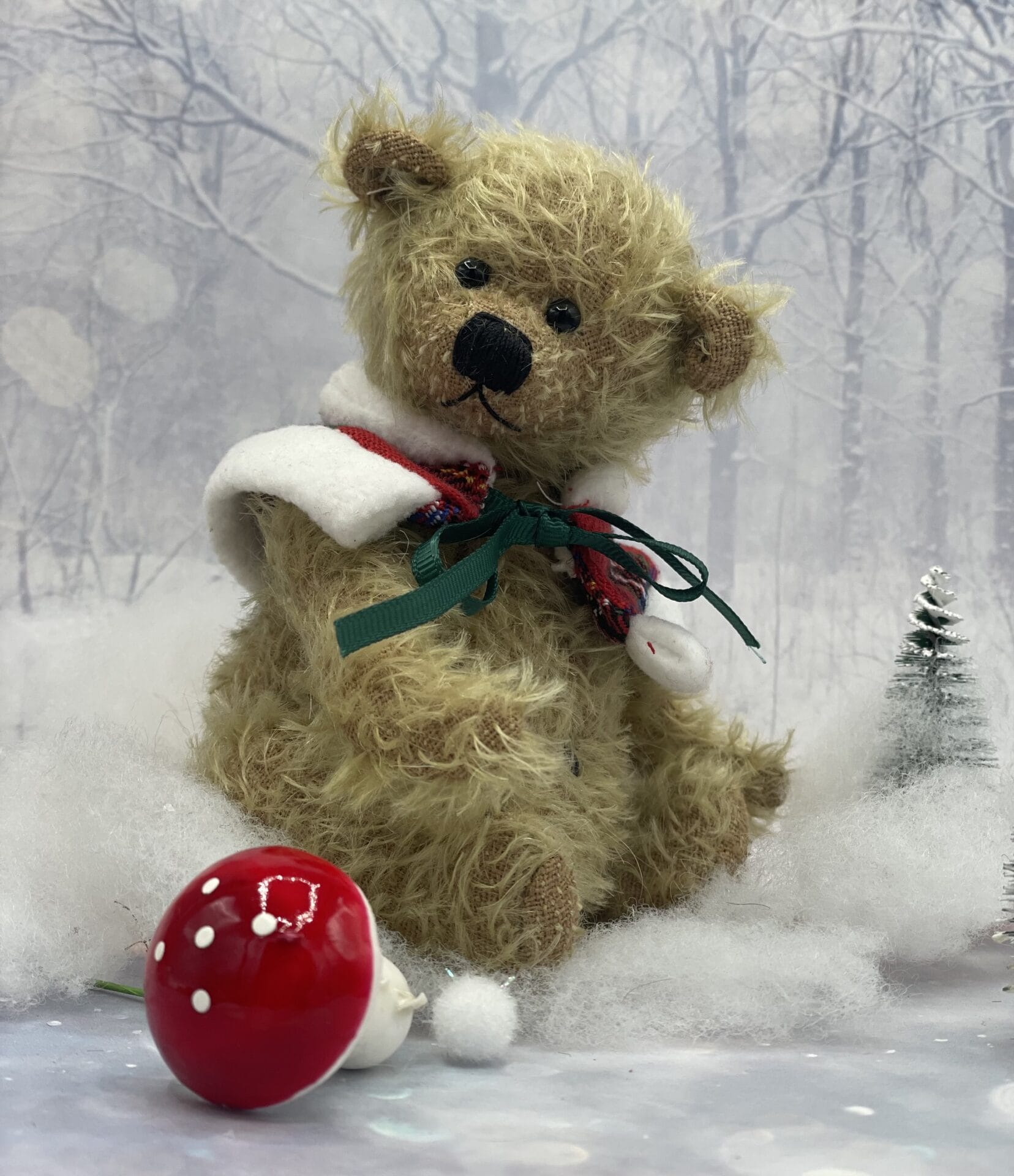 Entdecke Bärino Albert, den 12 cm großen Künstlerbären! Dieser einzigartige Bär wird von mir in liebevoller Handarbeit aus hochwertigem Mohair gefertigt und ist ein echtes Unikat. Sein Schal hält ihn im Winter schön warm und macht ihn zu einem stilvollen Begleiter.