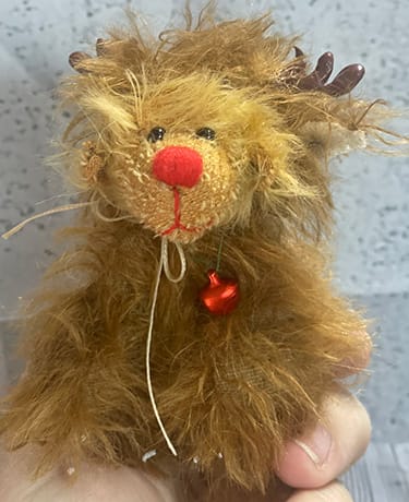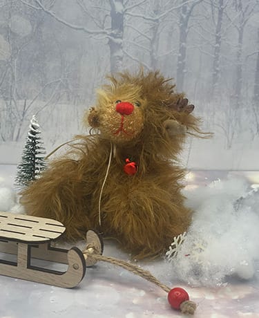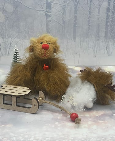 Bärchen Dancer möchte gerne Santa helfen und hat sich deshalb als Rentier verkleidet. Seine Mütze kann er aber abnehmen.