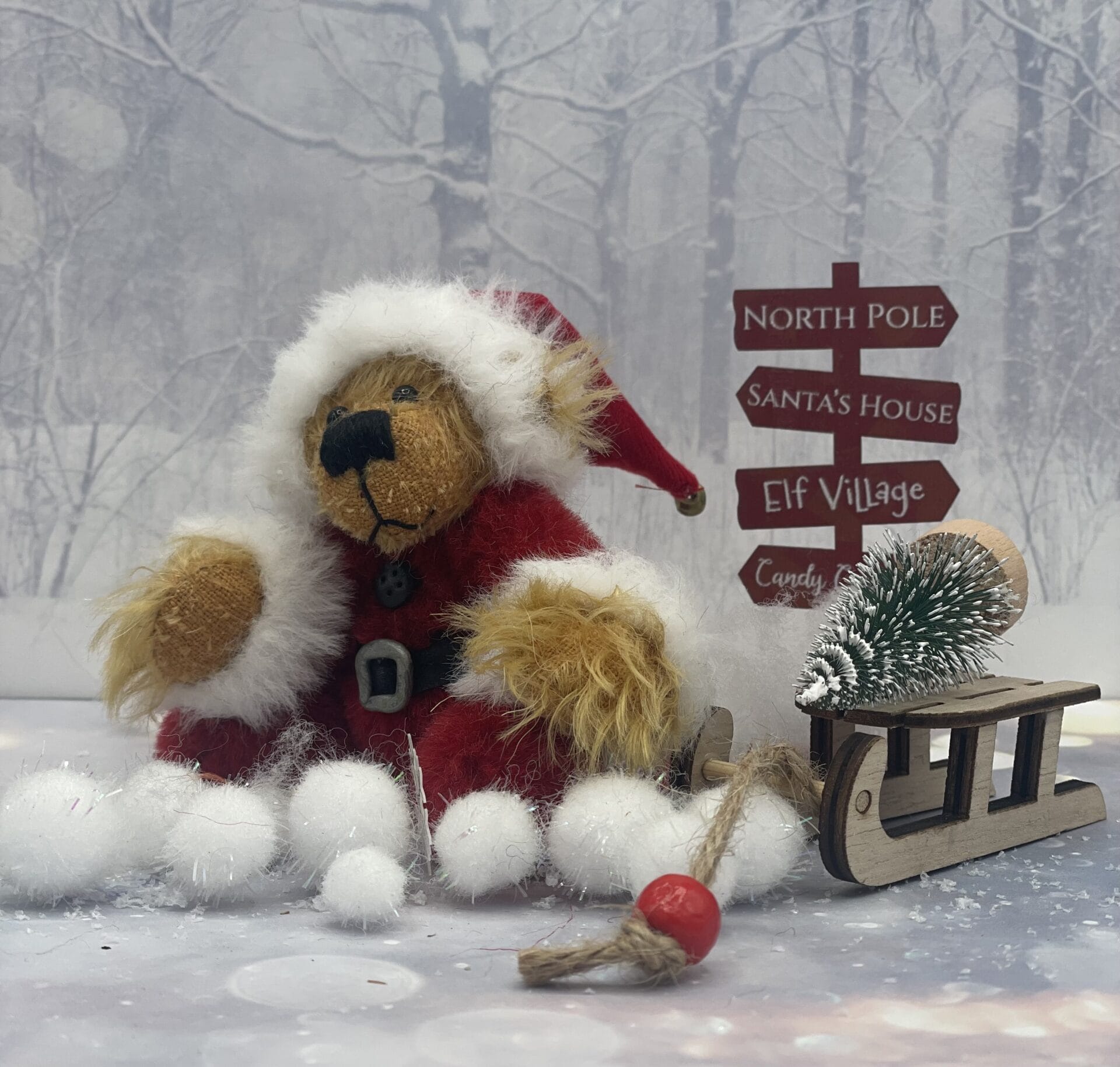 Zu deinem Bärino erhältst du auch einen kleinen Schlittenund den Tannenbaum als Accessoire.