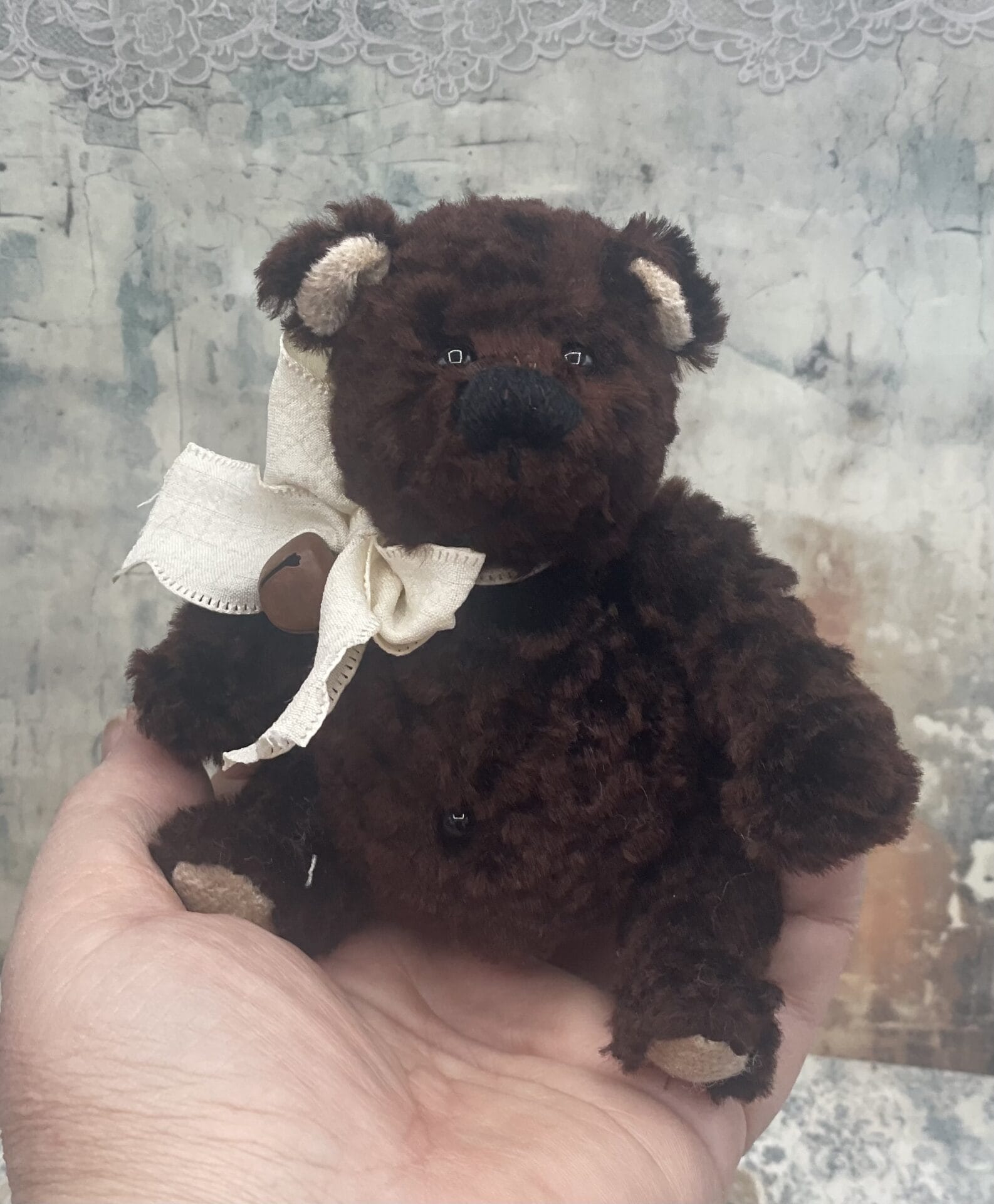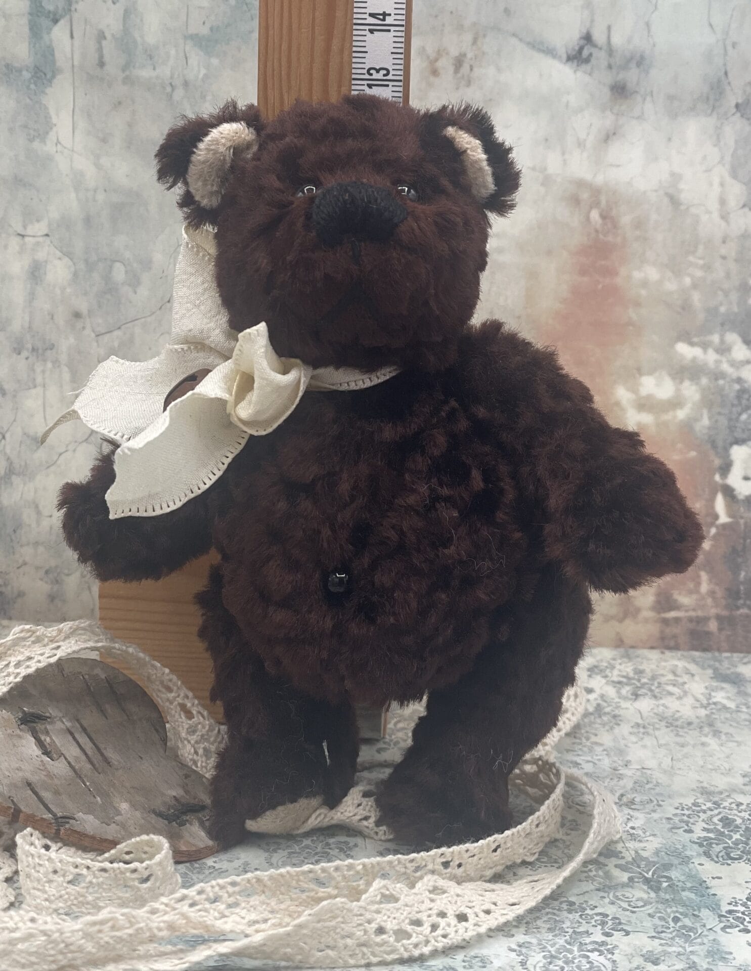 Entdecke Bärino Kuno, den 13 cm großen Künstlerbären! Dieser einzigartige Bär wird von mir in liebevoller Handarbeit gefertigt. Der Bauch von Kasimir ist mit Edelstahlgranulat gefüllt. Das sorgt für eine angenehm schwere und wertige Haptik – ein besonderes Gefühl, wenn du ihn in die Hand nimmst. Seine Glasaugen verleihen ihm einen ausdrucksstarken Blick, der die Herzen berührt
