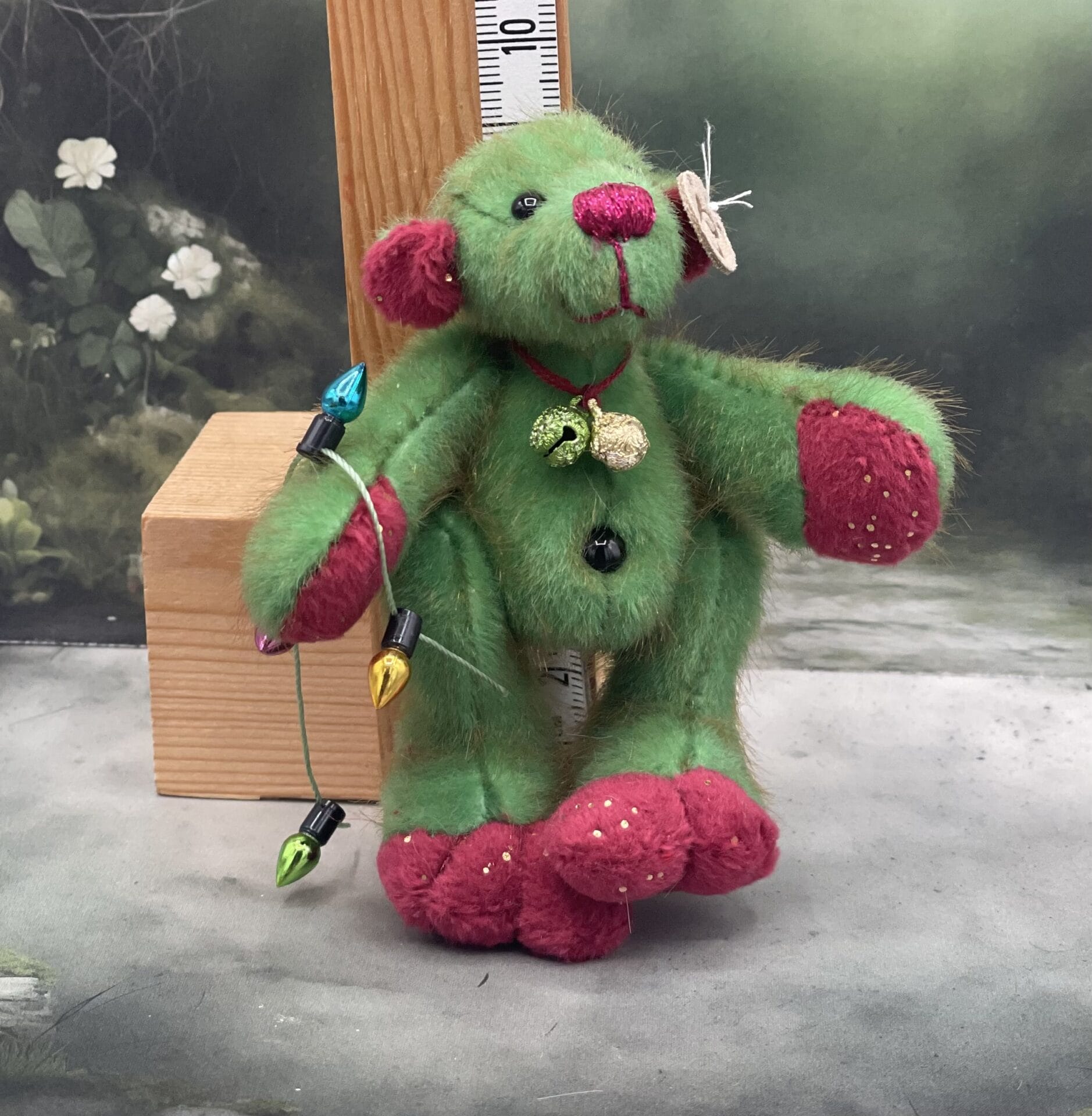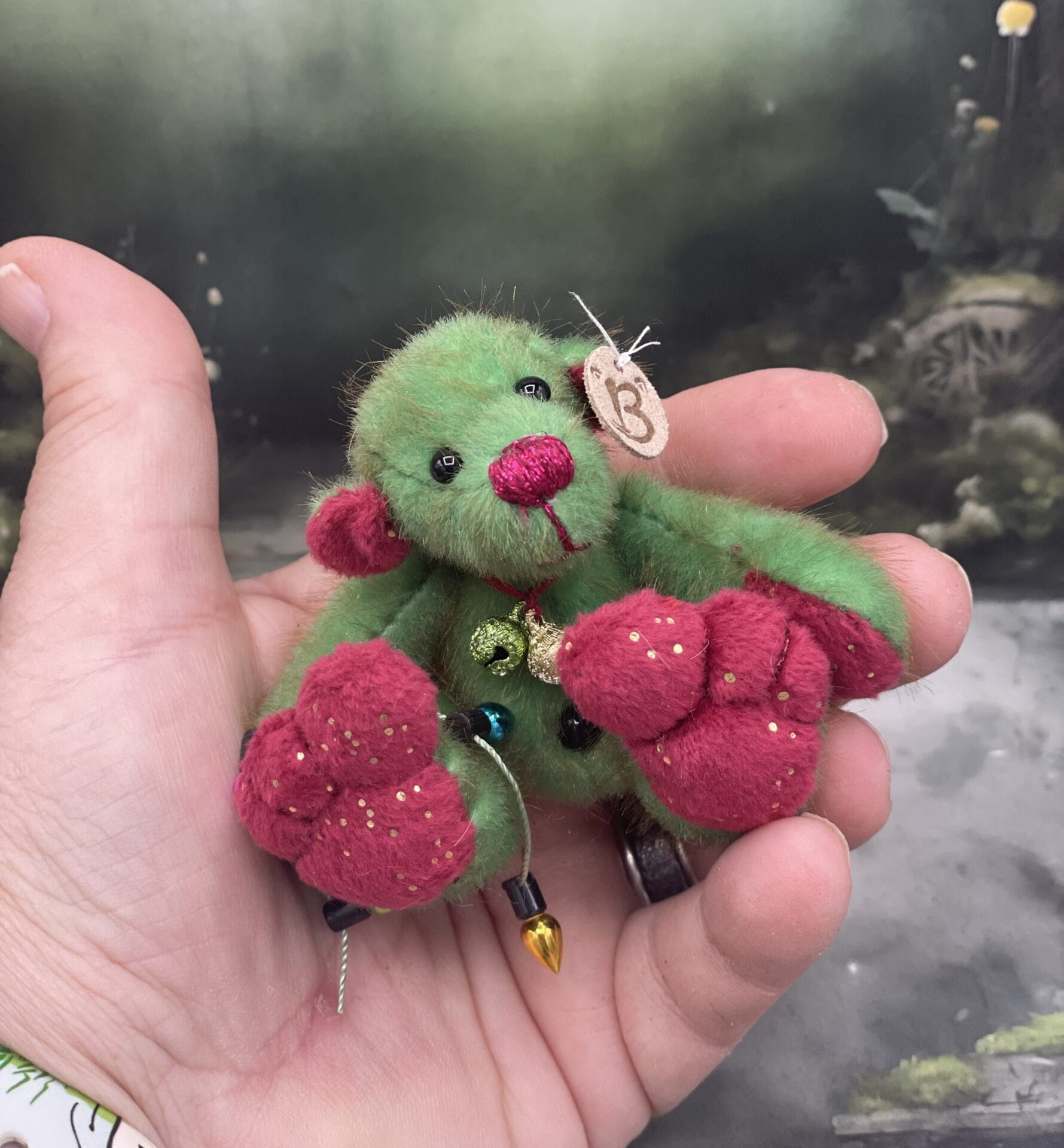 Er gehört zu den Weihnachtselfenbären und ist schon schwer mit den Vorbereitungen beschäftigt.