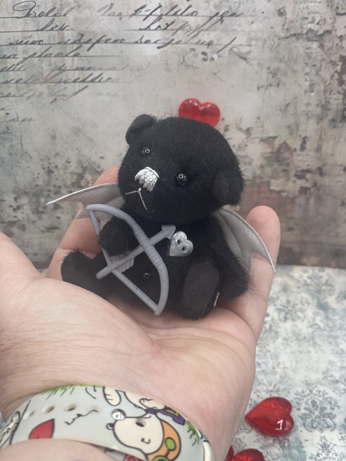 Valerio ist ein zauberhaftes kleines Bärenteufelchen mit einem verschmitzten Blick und einem ganz weichen Herzen. Liebevoll von Hand gefertigt, begeistert er mit seinen zarten Flügelchen, feinen Details und seinem niedlichen Ausdruck. Zwischen kleinen Herzchen zeigt Valerio, dass in ihm mehr Liebe als Schabernack steckt – ein besonderer Begleiter und ein herzerwärmendes Geschenk für alle, die das Verspielte und Handgemachte lieben. 🧸❤️