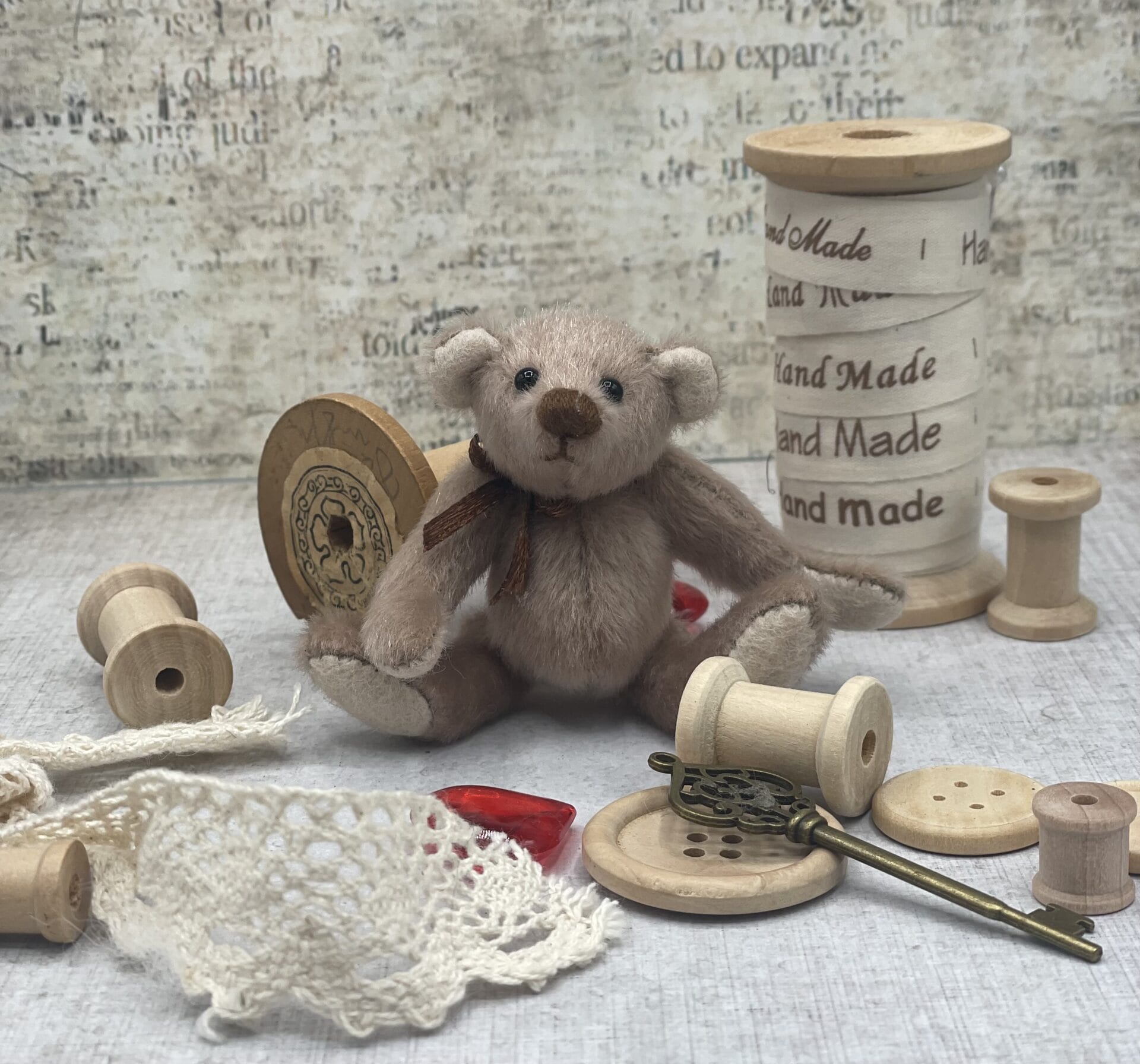 Wenn er zu Dir kommt, hat er, wie alle Bärinos eine kleines Lederlogo mit dem „B“ am Ohr, welches das geschützte Logo meine Marke Bärino ist.
